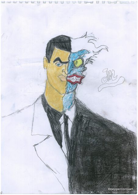 Harvey Dent/Two face Posted on July 22, 2012 by peppercornsart Share this: Click to share on X (Opens in new window) X Click to share on Facebook (Opens in new window) Facebook Like Loading... Related